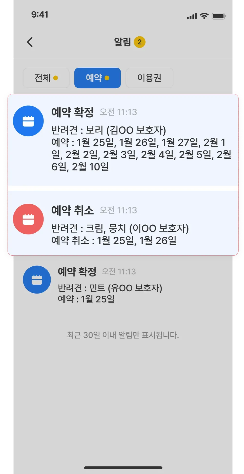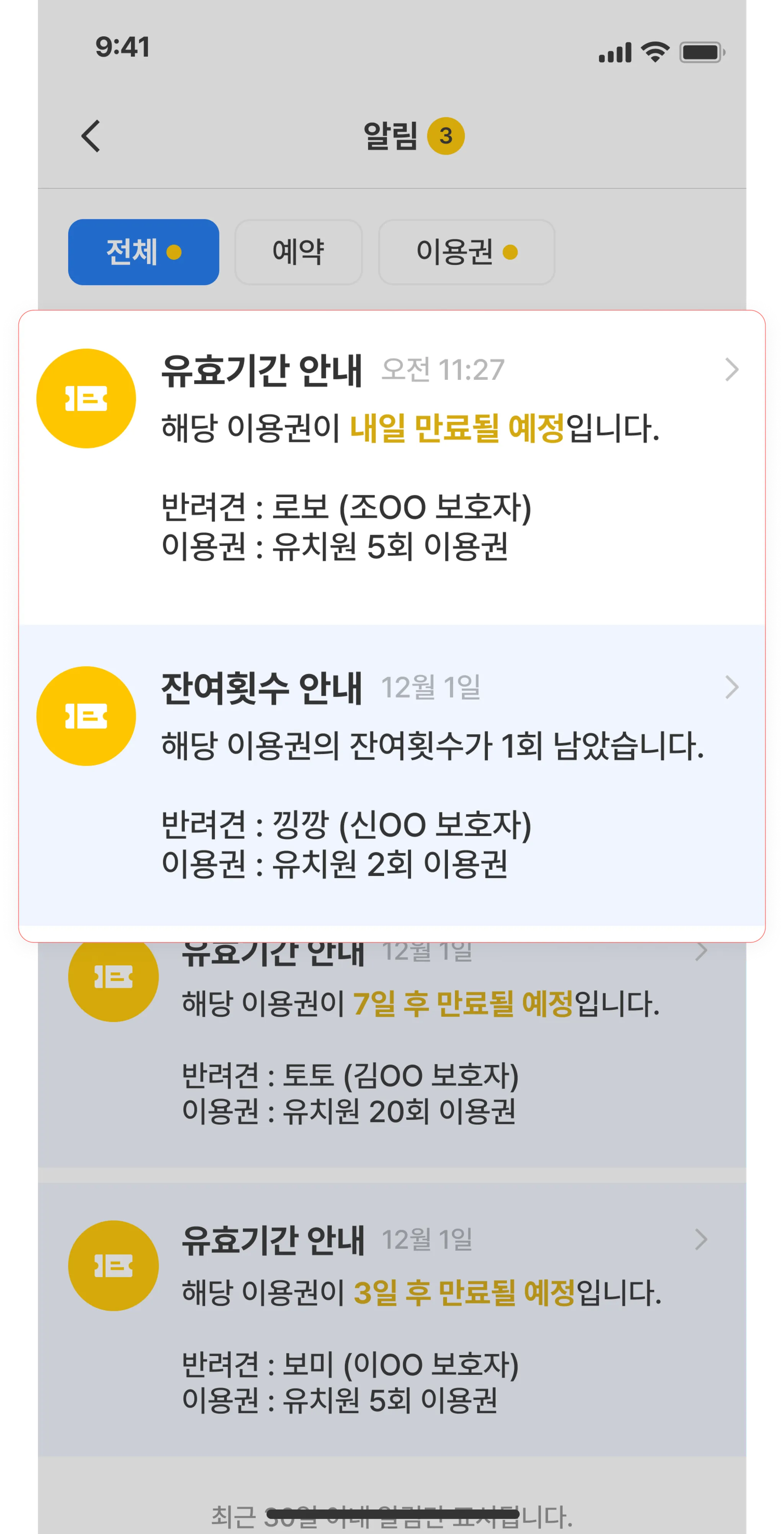 이용권·예약 관련 알림