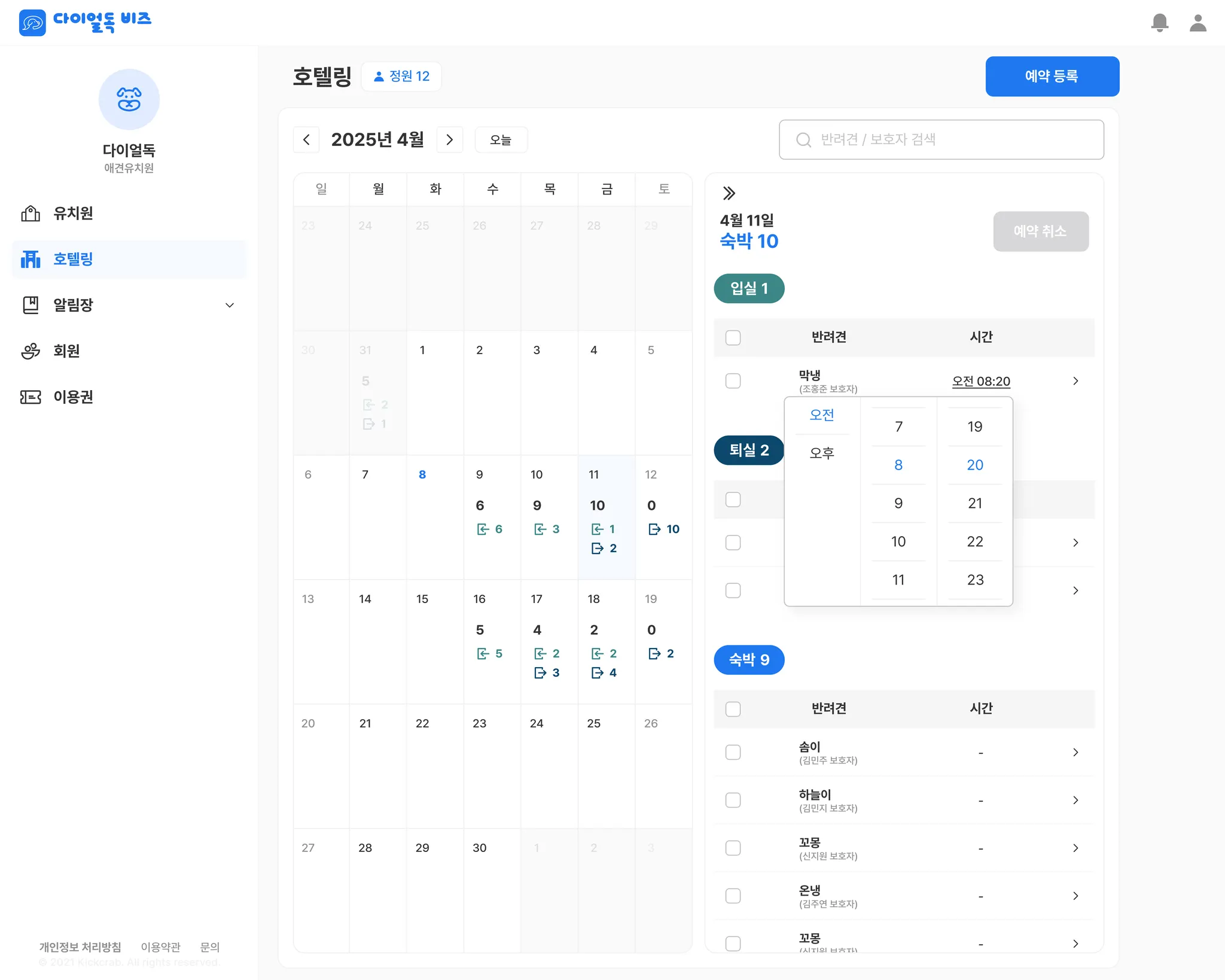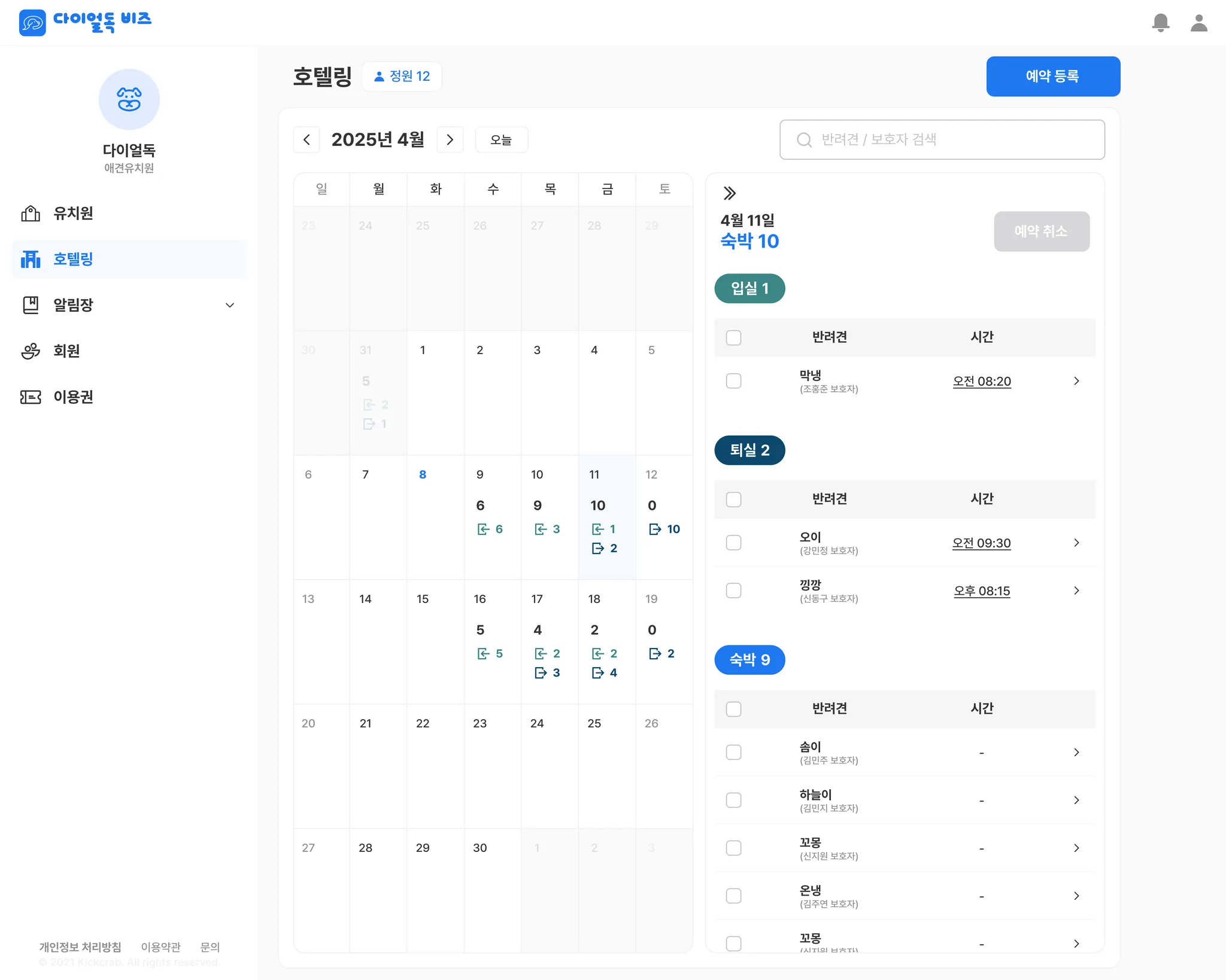 유치원과 비슷하게 날짜마다 머무르는 아이들의 숫자를 달력에서 확인할 수 있습니다.