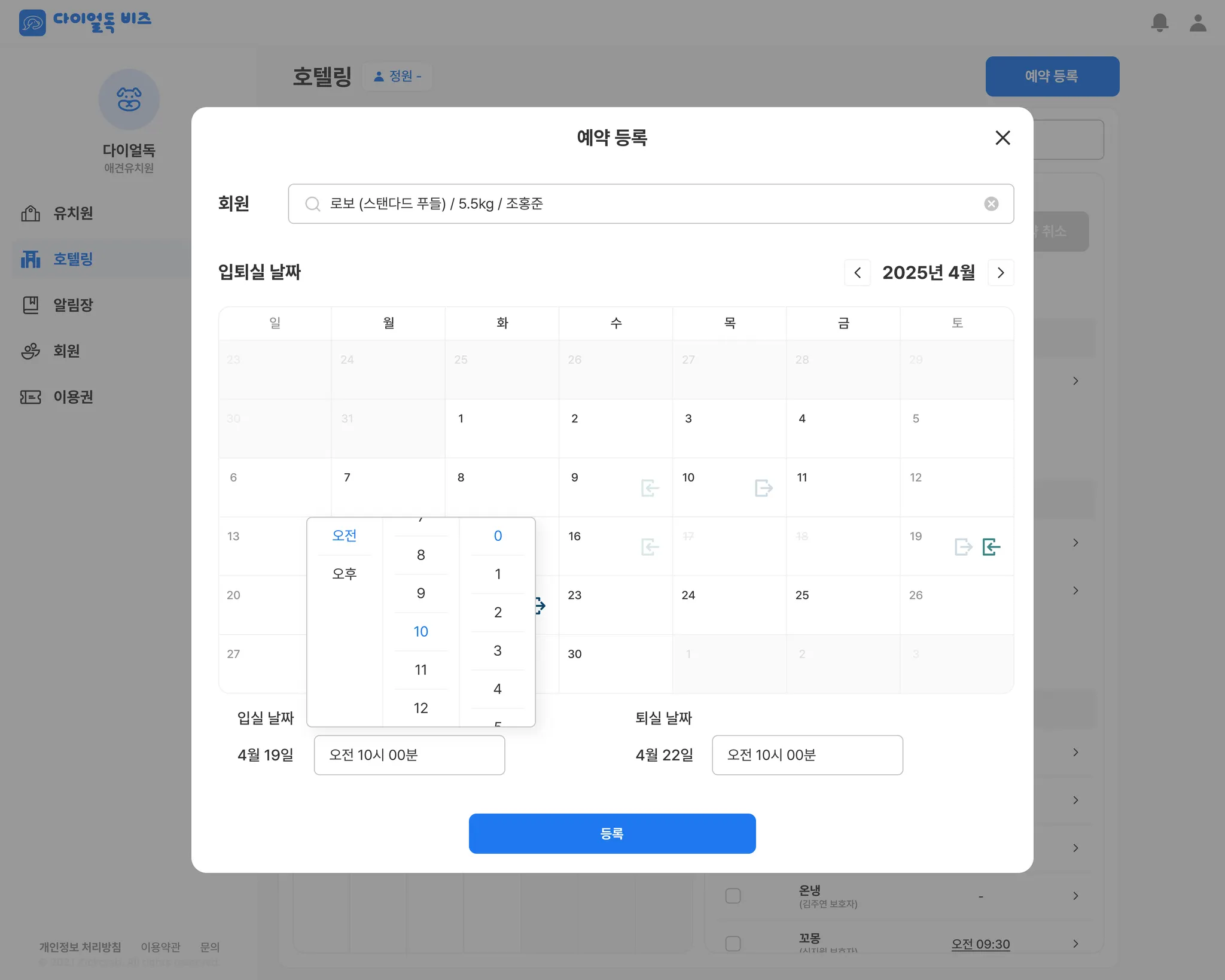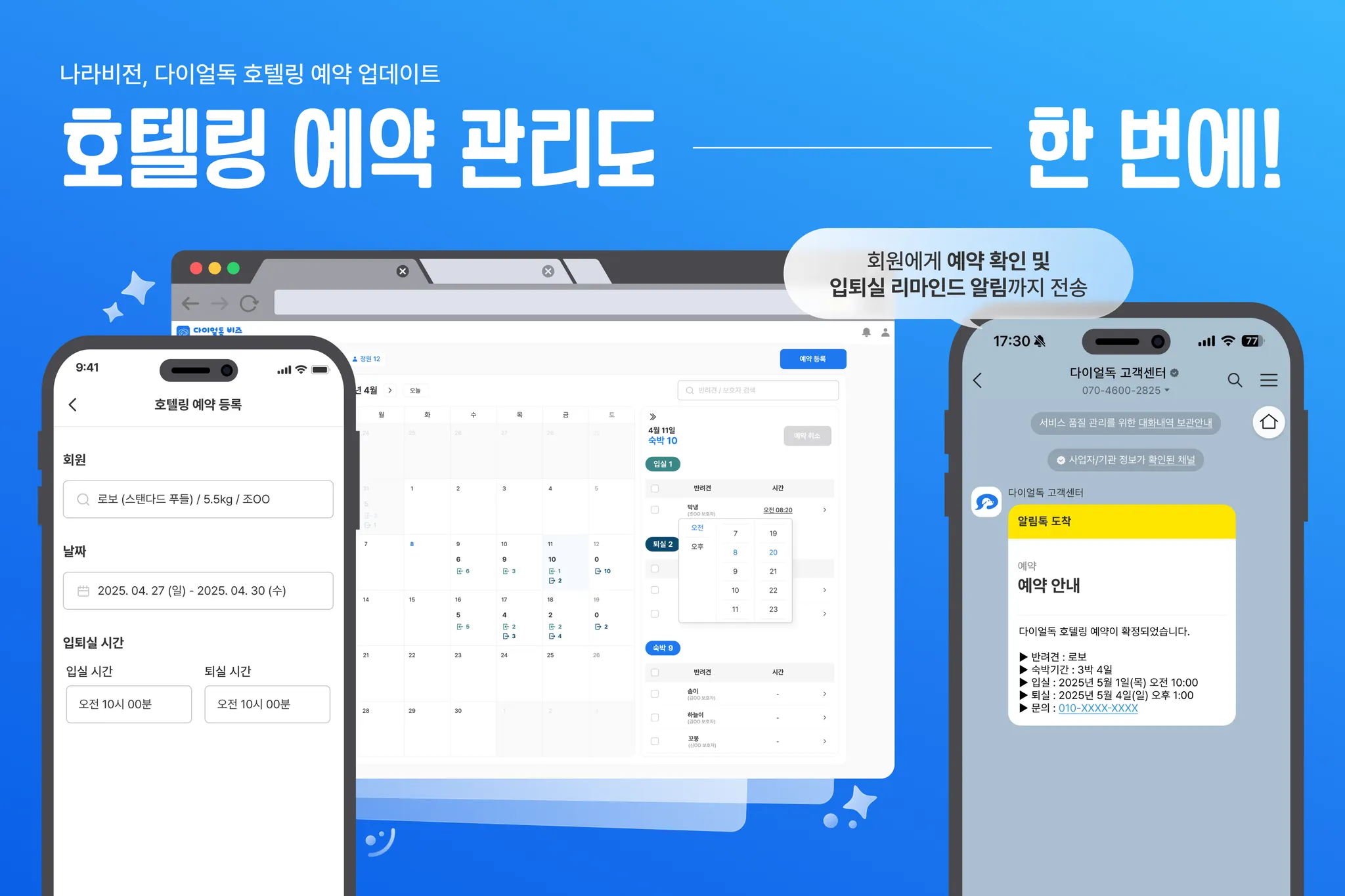 그래서 여름 휴가 시즌 전에 다이얼독에서 호텔링 예약도 관리할 수 있도록 해드리고 싶었습니다.