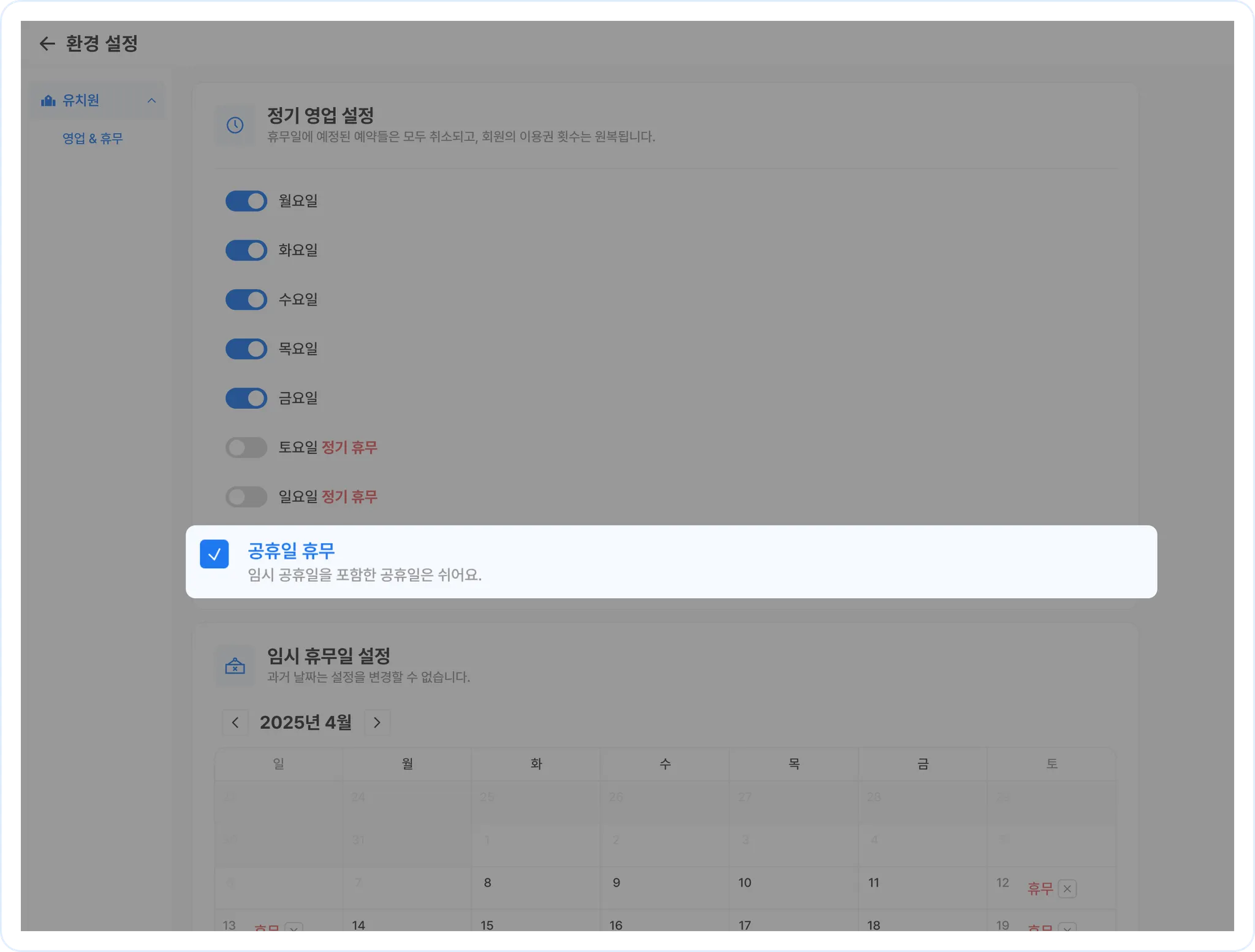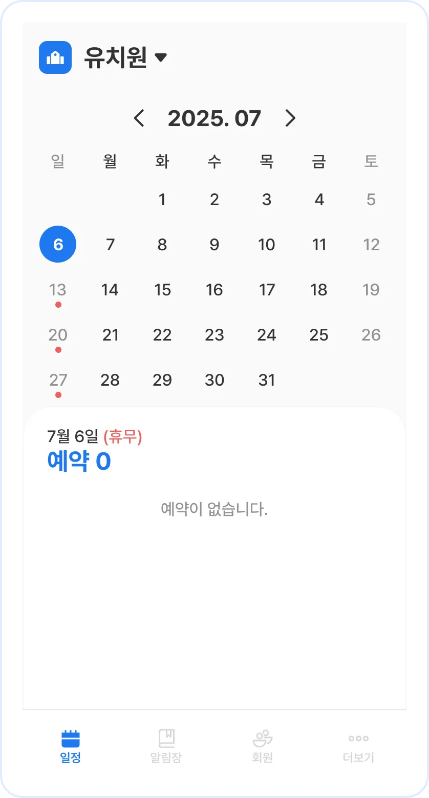 유치원 휴무 설정하고 보호자의 예약을 막아 보세요!