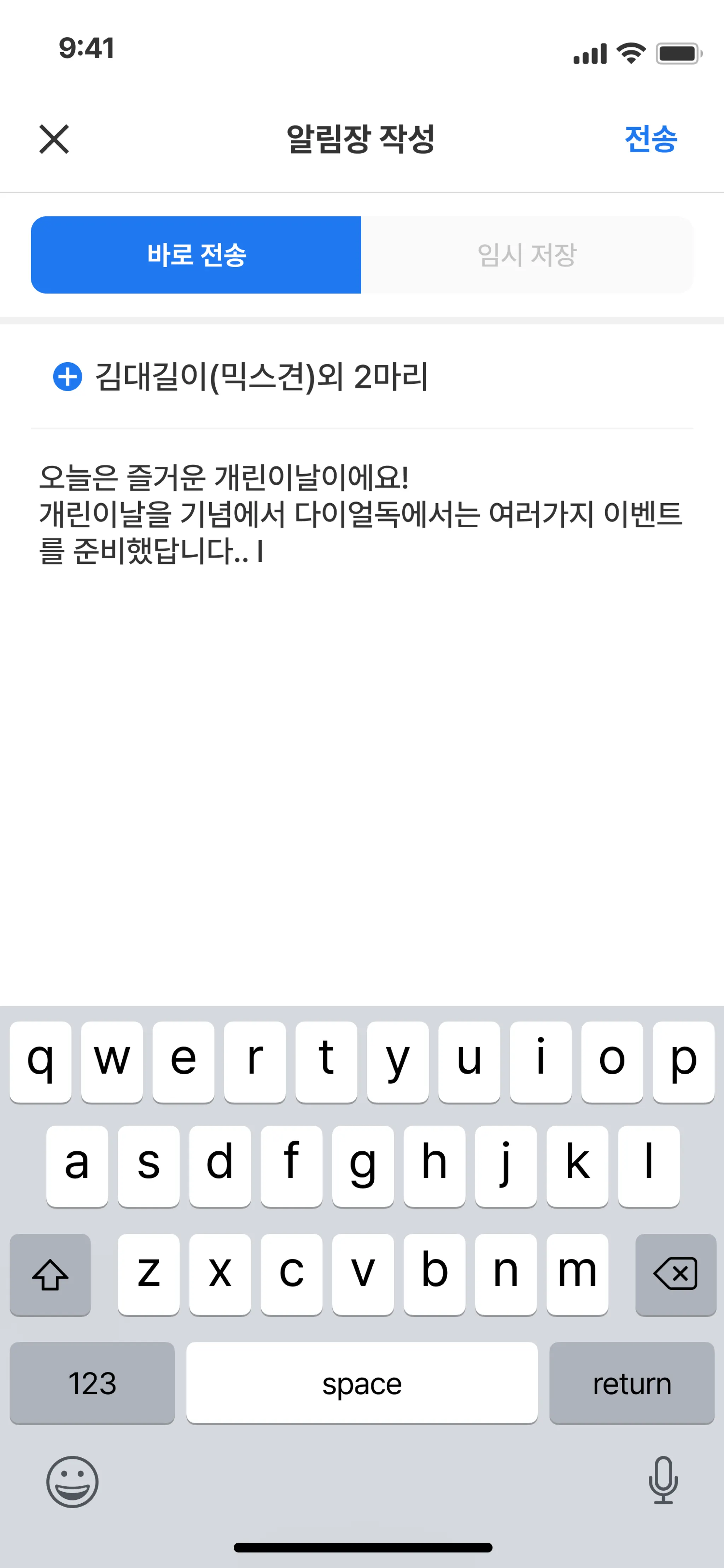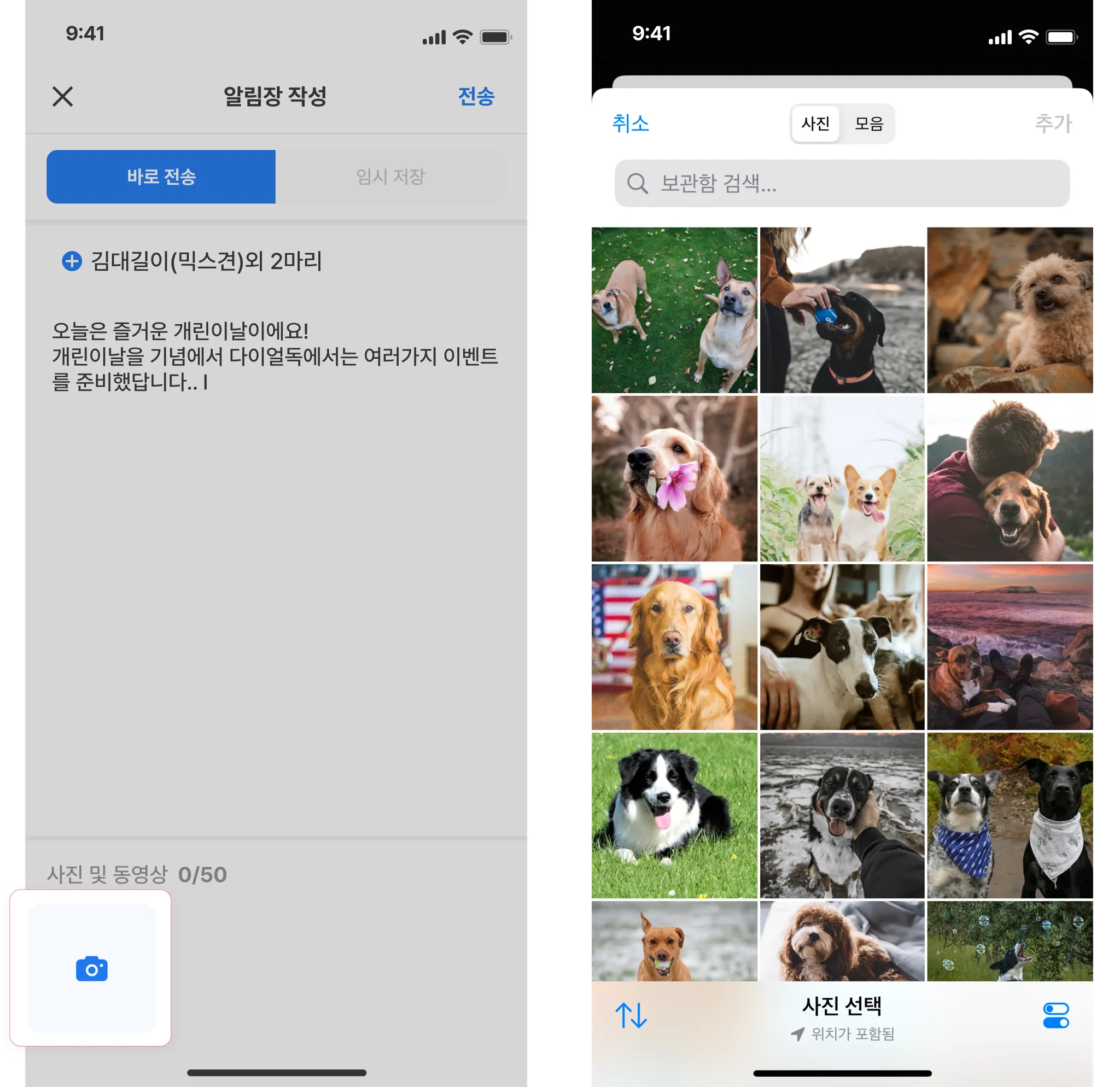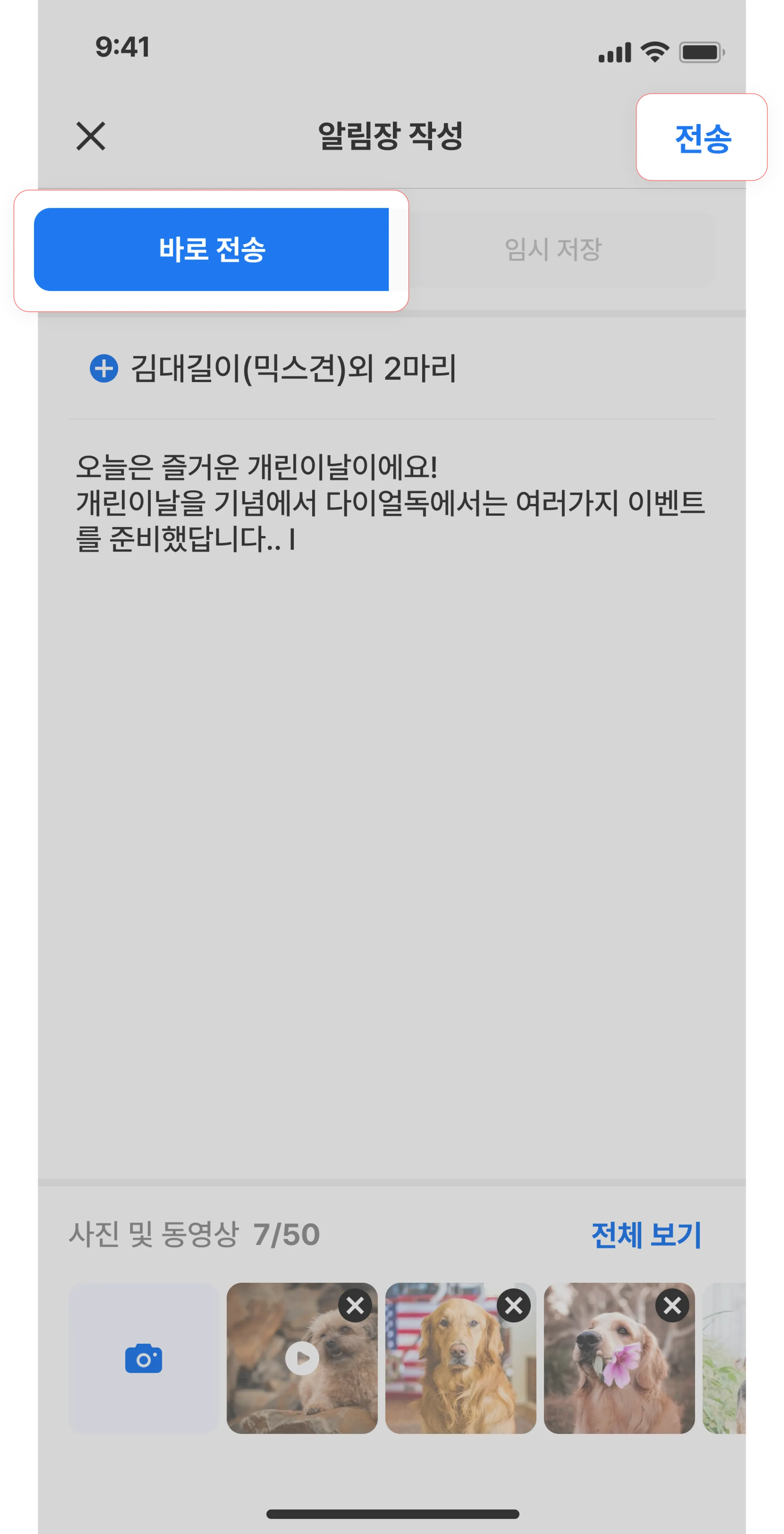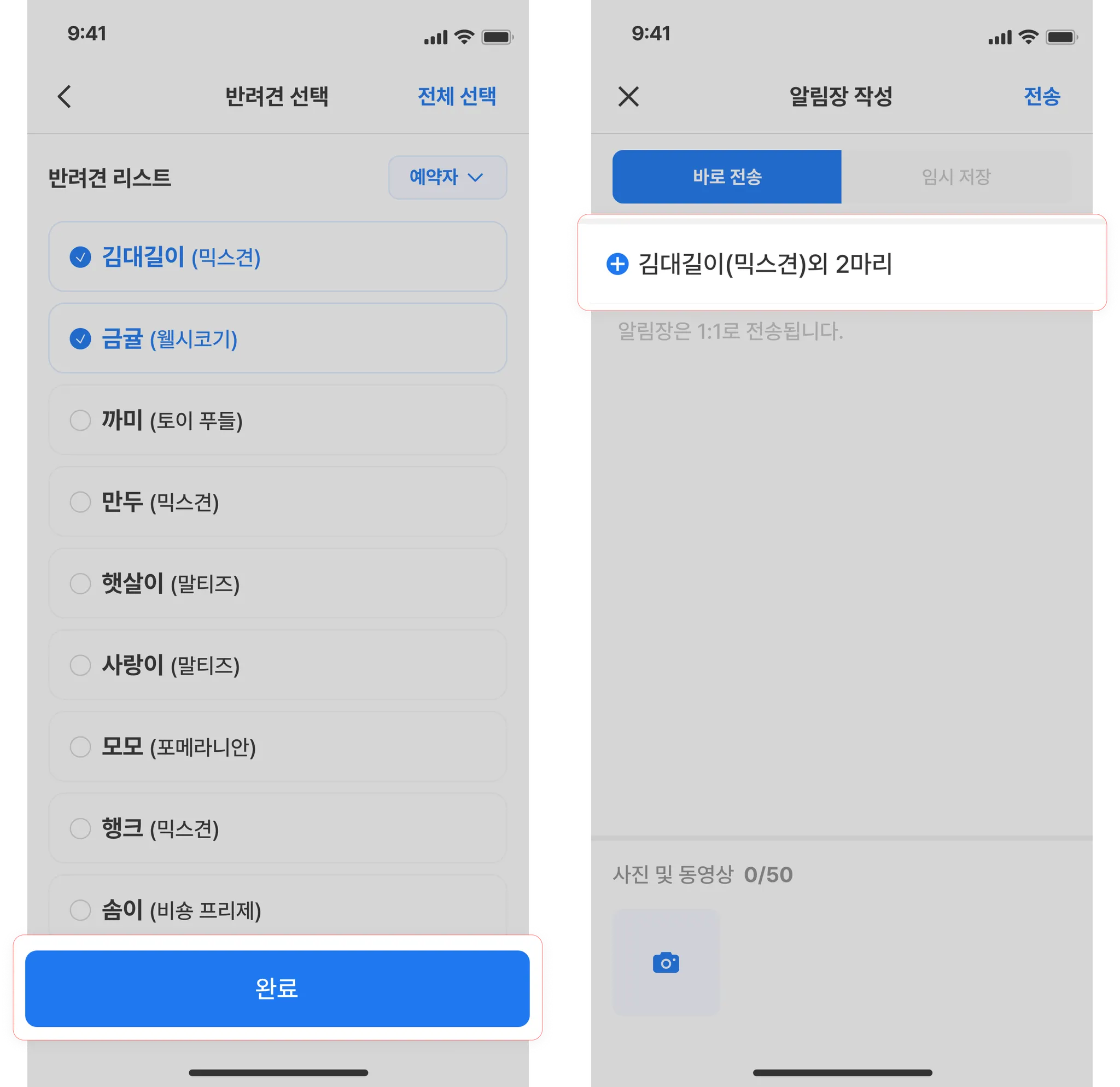 알림장을 보내고자 하는 반려견을 선택합니다.