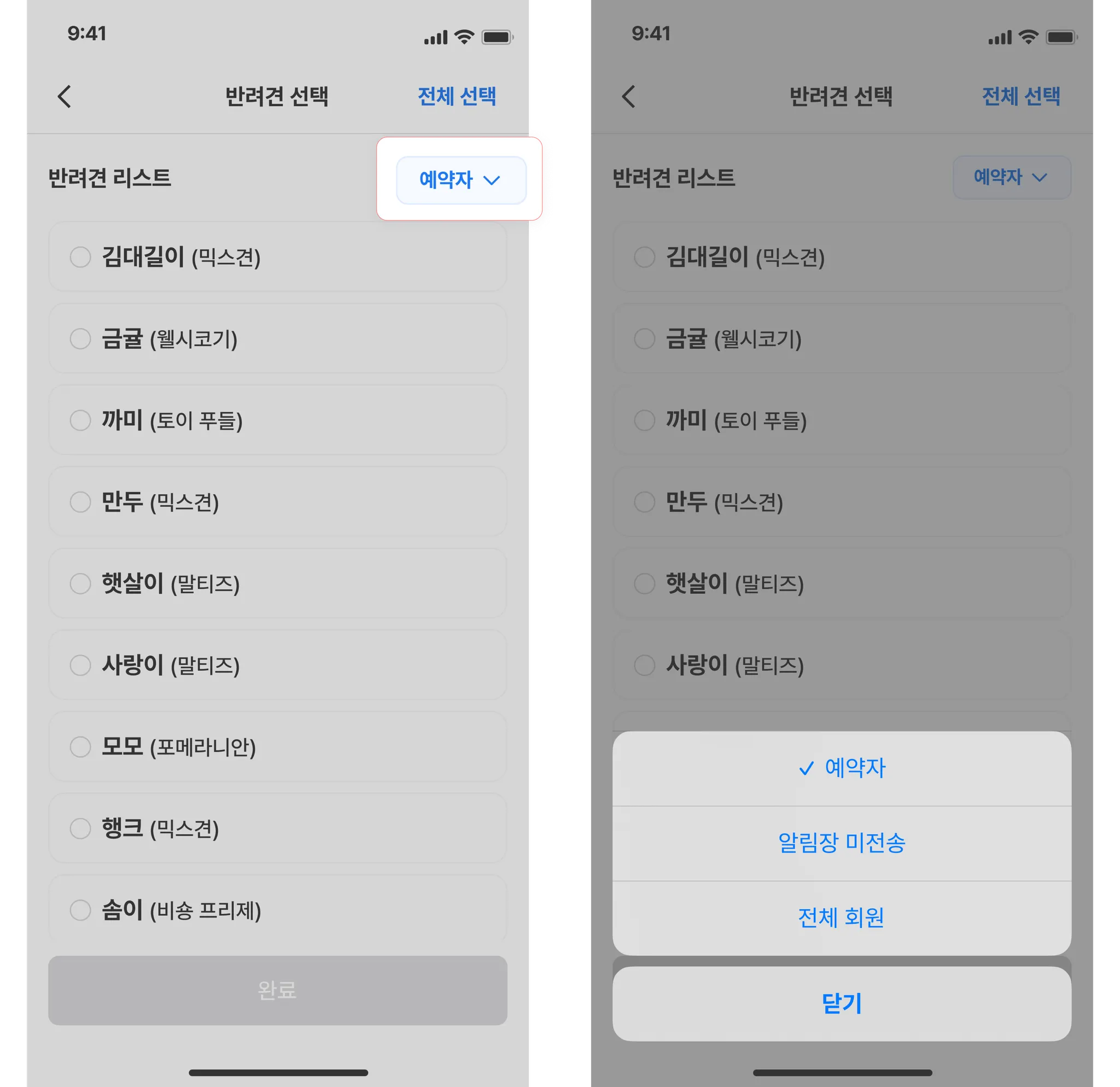 전체 회원 : 업체에 등록된 모든 반려견을 표시합니다.